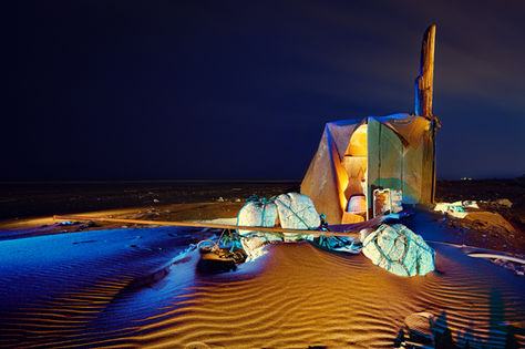 打光拍攝的過程中,清楚感受我們是挟帶著廢棄物走向現代,當下看見的不只是絢麗色光,而是意會到時代的起點與終點正看著我們。